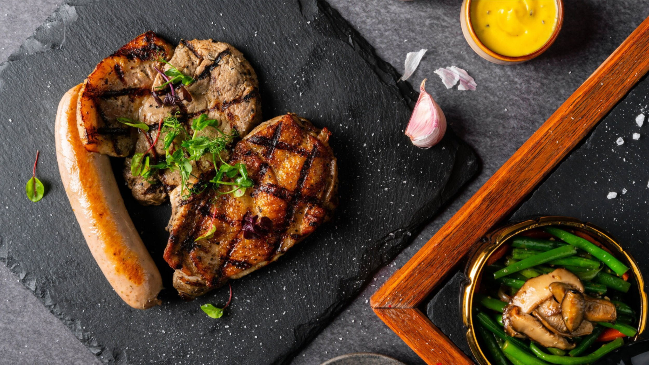 The grill's fired up and the meat's sizzling. That's the very warm welcome that awaits you here at COLLIN'S. Don't miss out on this succulent 45 Days Dry Aged Black Angus Tomahawk!
